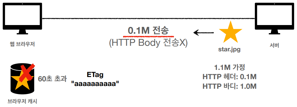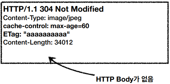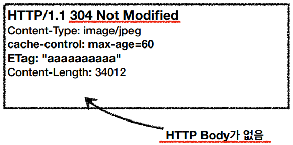 5) 서버는 HTTP Body없이 HTTP 헤더(0.1M)에 304 Not Modified(실패)를 응답한다.