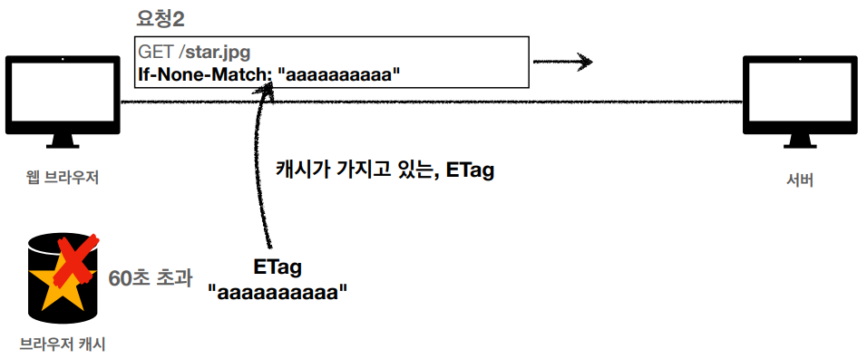 2) 브라우저는 캐시가 가지고 있는 ETag가 있으면 if-None-Match에 담아 요청한다.