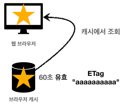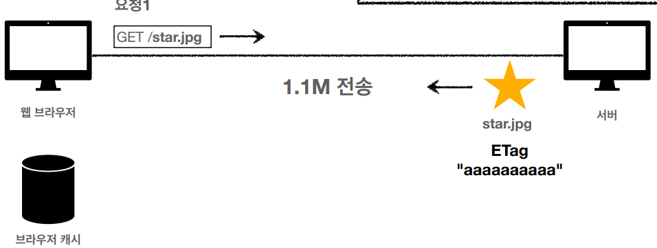 1) 브라우저에서 star.jpg 요청을 하면 서버에서 HTTP 헤더에 ETag 포함하여 응답한다.