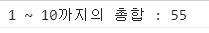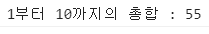console.log(`1 ~ 10까지의 총합 : ${sum}`);