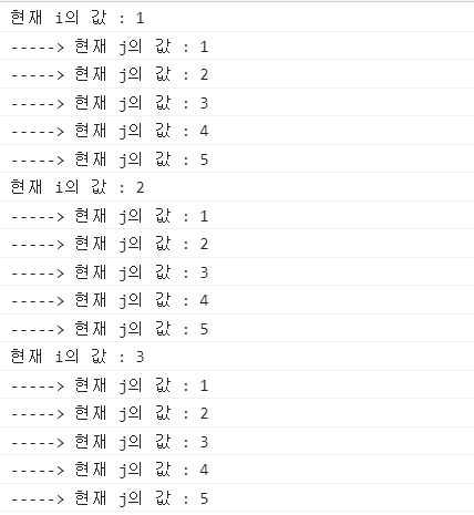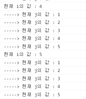 console.log(`-----> 현재 j의 값 : ${j}`);