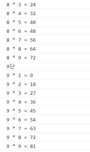 예시 2) 2-9단까지
