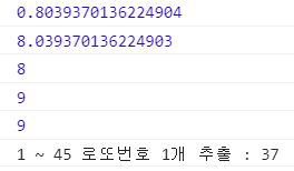 console.log(`1 ~ 45 로또번호 1개 추출 : ${lotto}`);