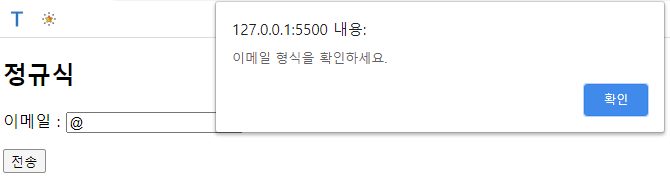 * test() : 정규식 표현식에 대입한 문자열이 부합하면 true, 아니면 false를 반환합니다.