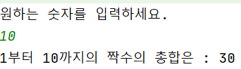 문제 : 입력받은 숫자 중 짝수만 더해라!