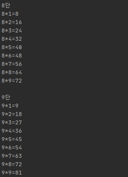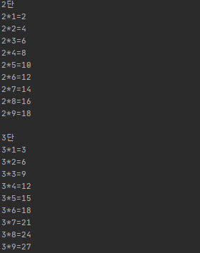 문제 > 2단부터 9단까지 중첩for문으로 구구단 완성해보자!