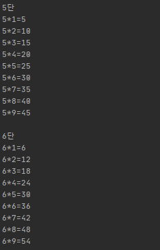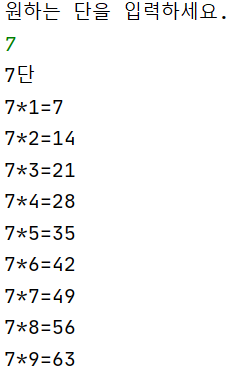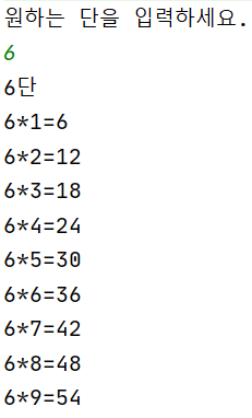 원하는 단을 입력받아 구구단을 출력하는 프로그램을 작성(for문)