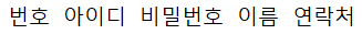 String str6 = "번호 아이디 비밀번호 이름 연락처";