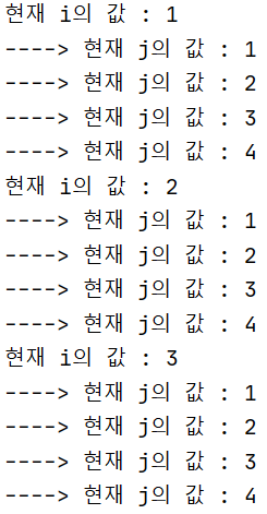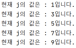 System.out.println("현재 j의 값은 : " + j + "입니다.");