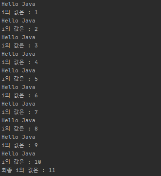 System.out.println("최종 i의 값은 " + i + "입니다.");