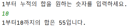 System.out.println("1부터 누적의 합을 원하는 숫자를 입력하세요.");