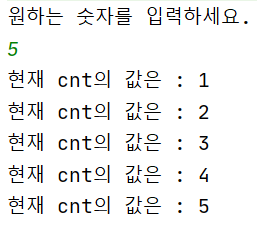 System.out.println("현재 cnt의 값은 : " + cnt);