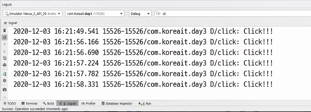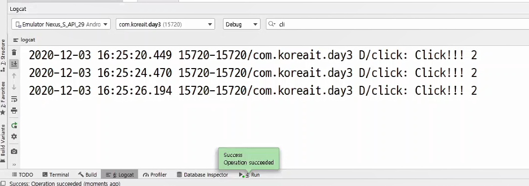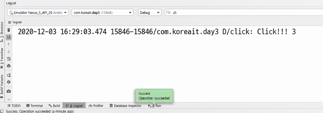 ● 익명 함수 방식 (Generate -> Override Members 가 확인 -> onClick 하면 자동완성)