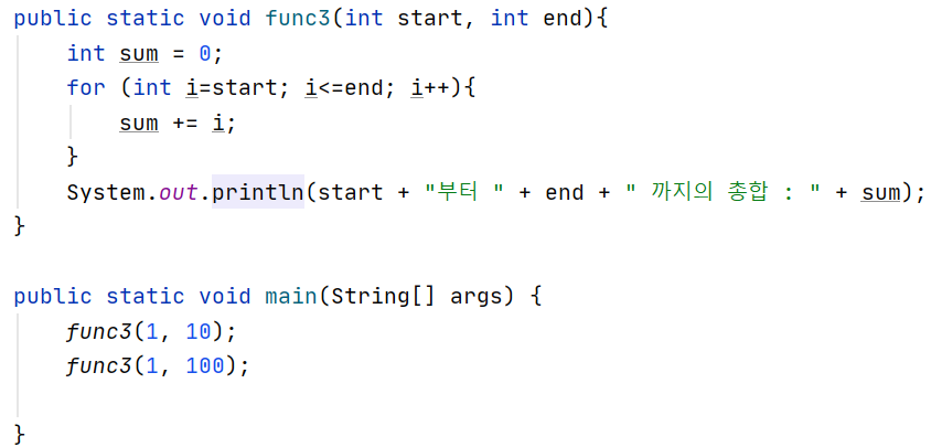*사용방법 : 접근제한자 [static] 반환형(데이터타입) 메소드명(매개변수1, 매개변수...) {