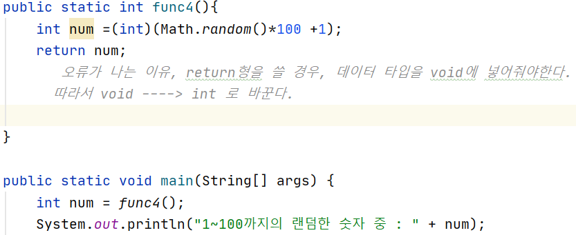 (단, 메소드를 사용하고 모든 값은 return; 형으로 돌려받아 출력)