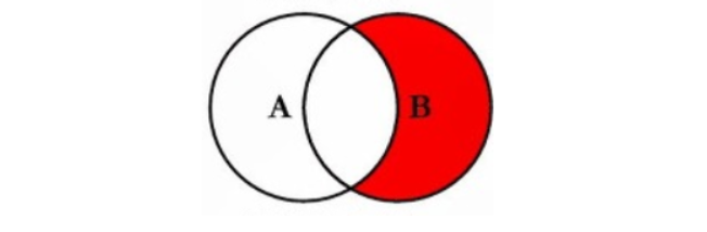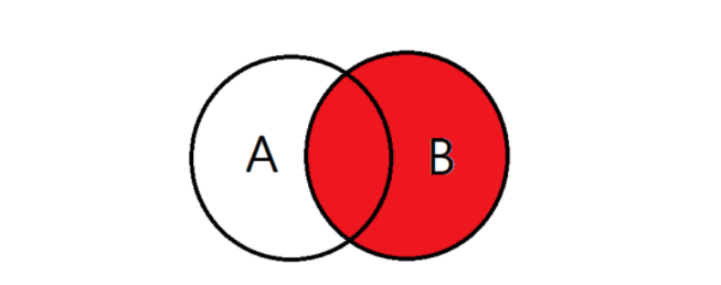 ( 쉽게 생각하면, B를 기준으로 LEFT JOIN 하고 , 겹치는 쪽을 빼기 위해서는 반대쪽 KEY NULL 하면 된다. )