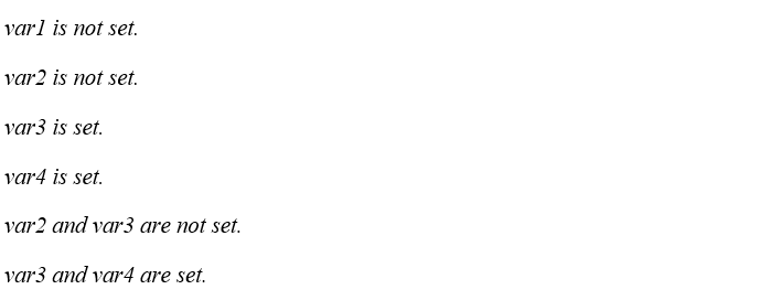 - $var1, $var2, …이 설정되었는지 확인합니다. 모든 변수가 설정되었으면 TRUE, 그렇지 않다면 FALSE를 반환합니다.
