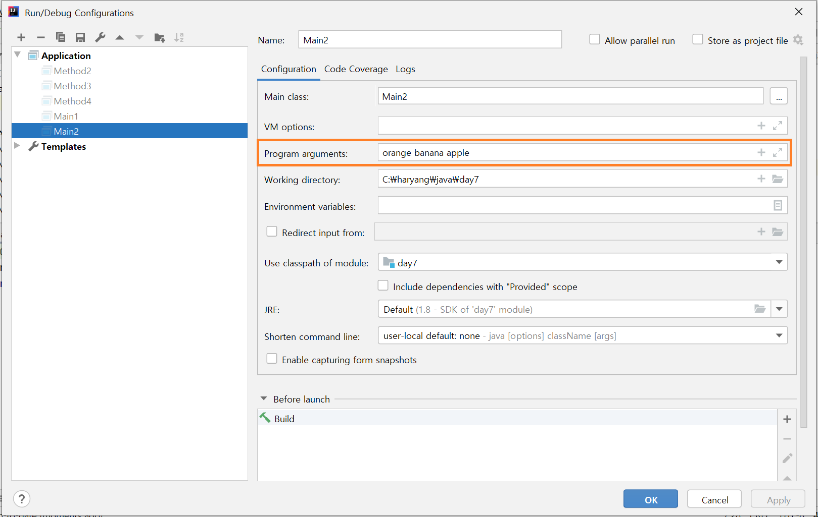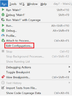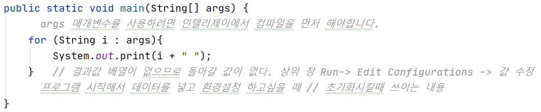 * 인텔리제이 기준 ( main 메서드에 추가할 데이터가 있을 경우 )