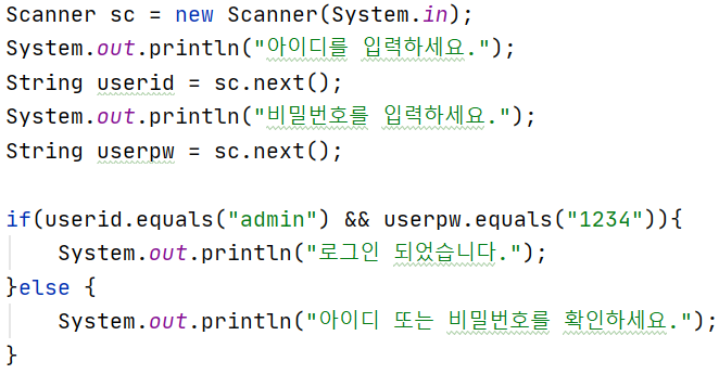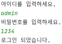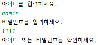 아이디와 비밀번호를 입력받아 로그인 여부를 알려주는 프로그램을 작성.