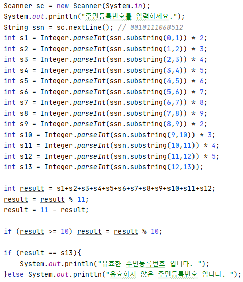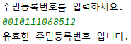 5. 마지막 남은 값이 주민등록번호 끝자리와 일치하면 유효한 주민등록번호입니다.