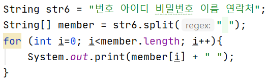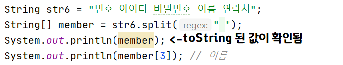 String[] str = 문자열.split(" "); -> 띄어쓰기 기준으로 문자열을 나눠준다.