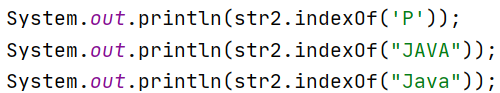 * str2에는 대소문자 구별을 하기 때문에 "JAVA"를 찾지 못하면 -1로 나온다.