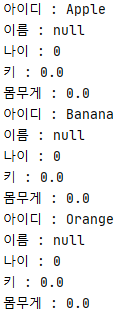 나머지(이름, 나이, 키, 몸무게) 입력하지 않아 기본값으로 노출한다.