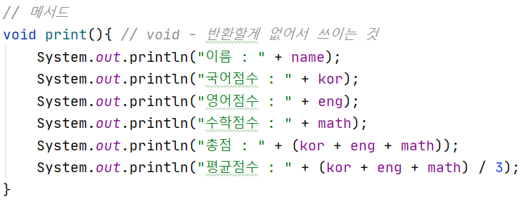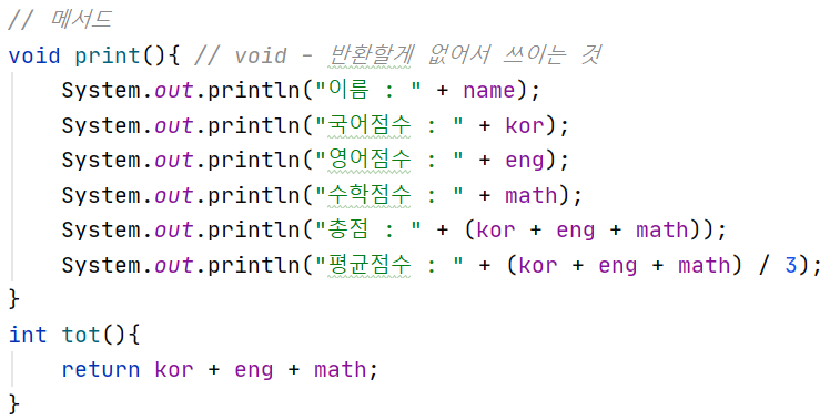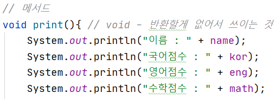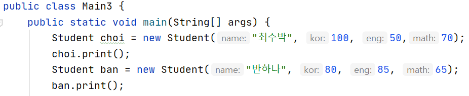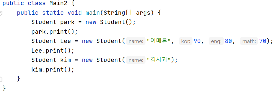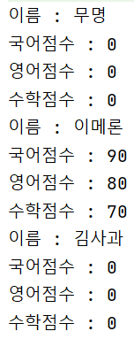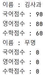 ● stu2.print(); 초기화 - 값에 아무것도 넣지 않을 때 노출되는 내용이다.
