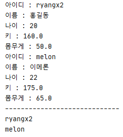● User 클래스에 대한 값에 정보(아이디만)를 입력하여 노출한다.