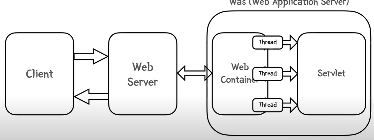 WebContainer 요청(Request)이 들어오면 Thread를 생성하고, Servlet을 실행시킨다.