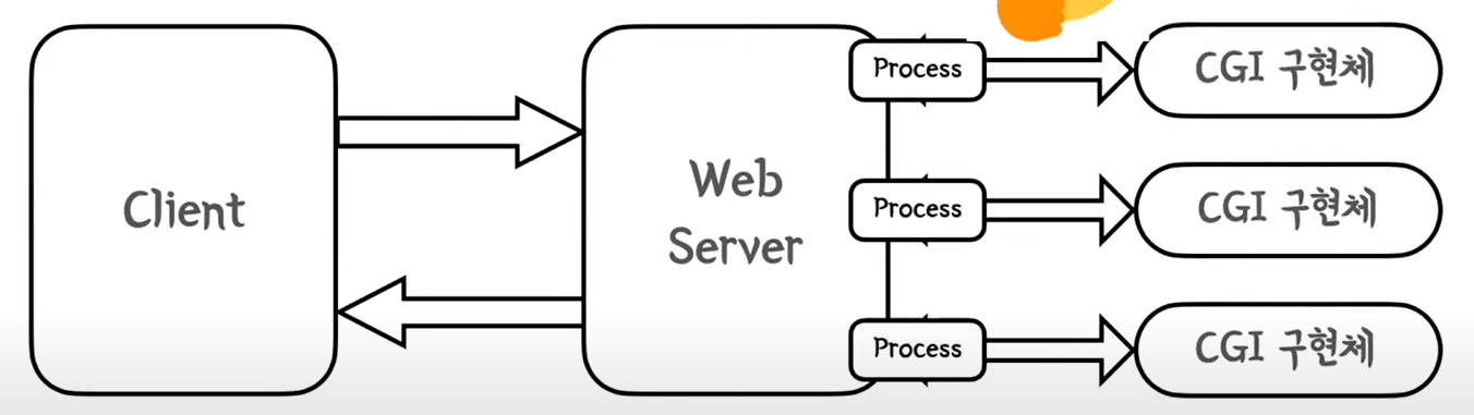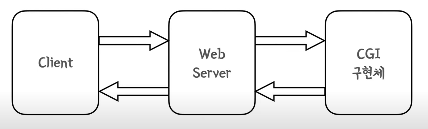 이러한 문제 해결을 위해 CGI(Common Gateway Interface)라는 동적인 데이터를 제공하기 위한 규약이 나오게 됩니다.