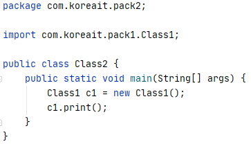 * default : 현재 클래스와 동일 패키지 내에서만 접근하거나 호출할 수 있습니다.