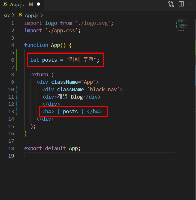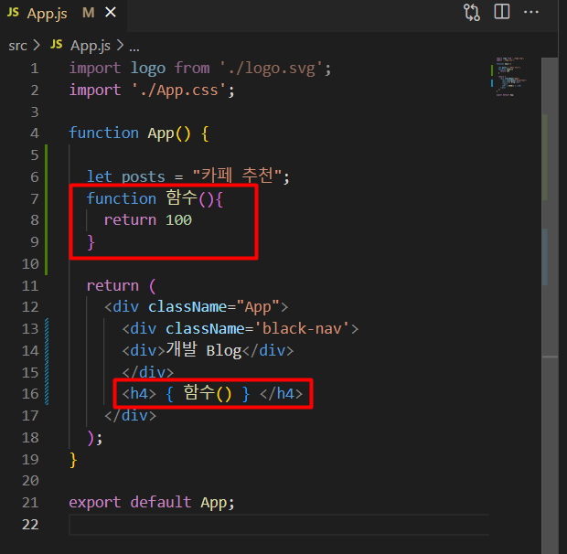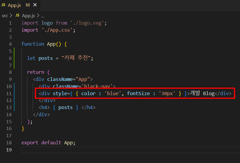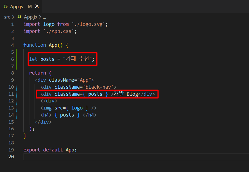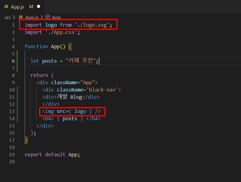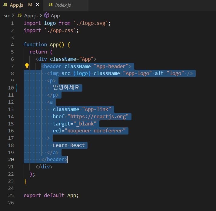 App.js 에서 필요없는 코드 기존 작성된 header 부분 삭제