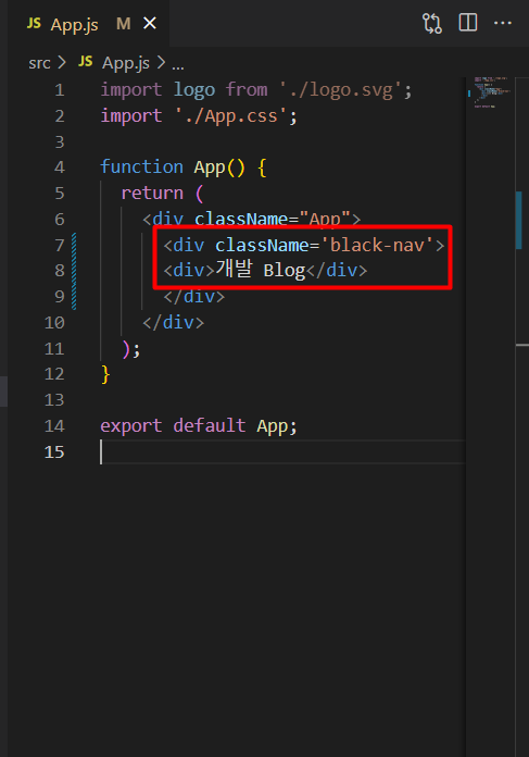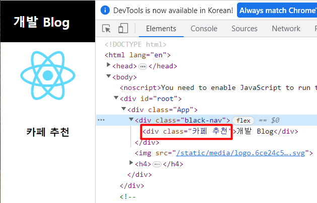 기존 <div class="클래스명">으로 사용할 수 없고, <div className="클래스명">으로 사용해야 한다.