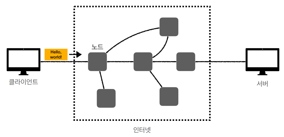 인터넷은 수많은 노드, 서버와 링크들을 거쳐서 메시지가 전달되어야 한다.