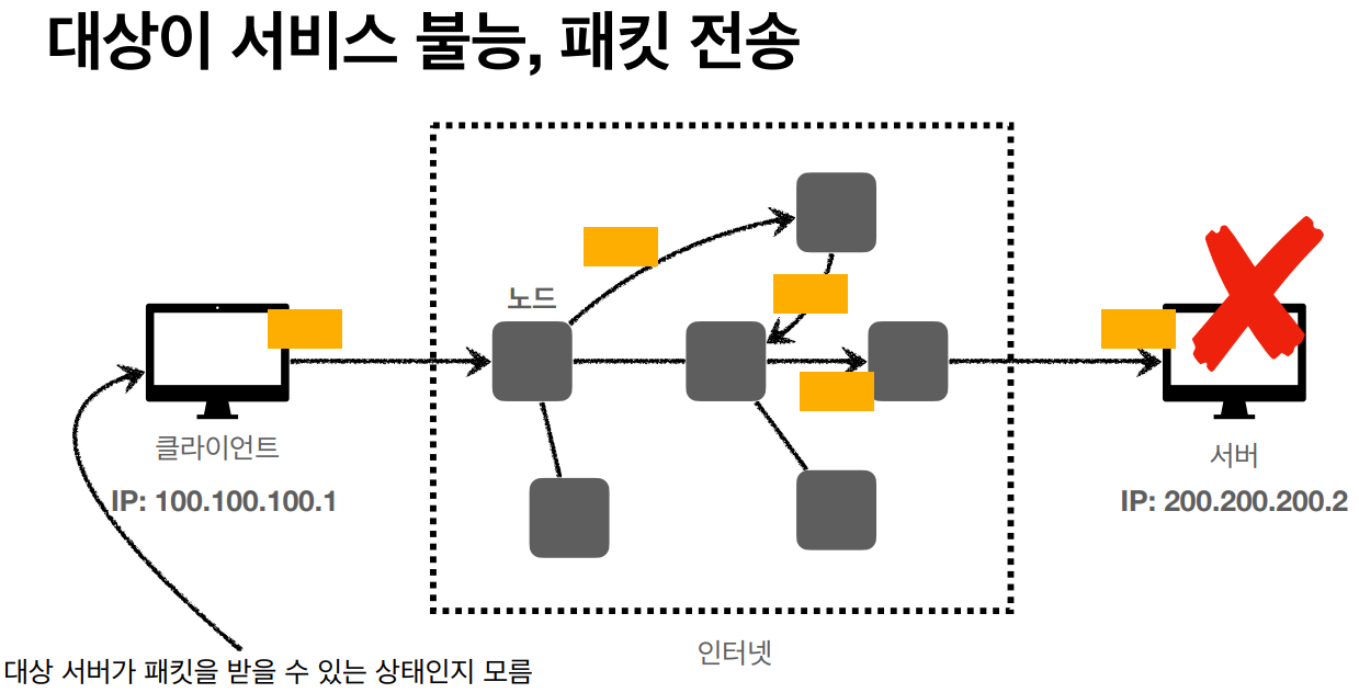 - 패킷을 받을 대상이 없거나 서비스 불능 상태여도 패킷 전송