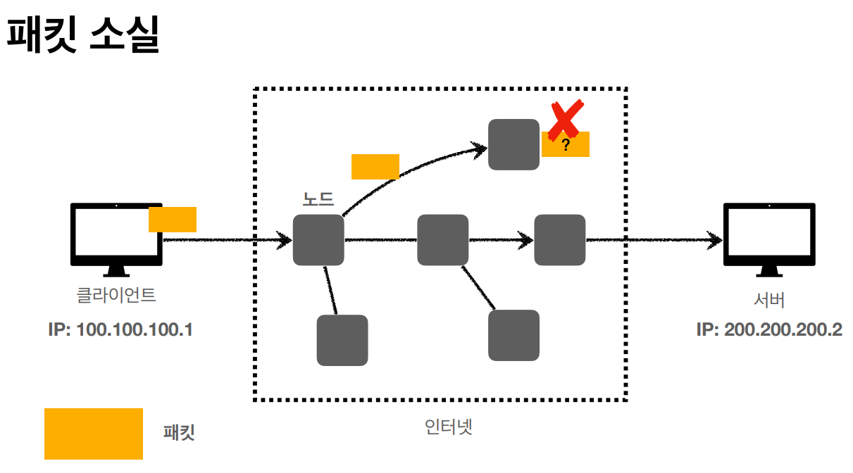 👉 중간 노드에서 문제가 생길 경우, 클라이언트에서 보낸 패킷이 유실될 수 있다.