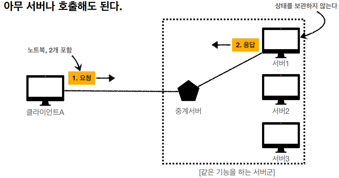 서버1은 상태를 보관하지 않고 필요한 부분을 응답만 한다.