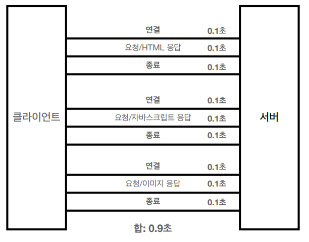 - 지금은 HTTP 지속 연결(Persistent Connections)로 문제 해결