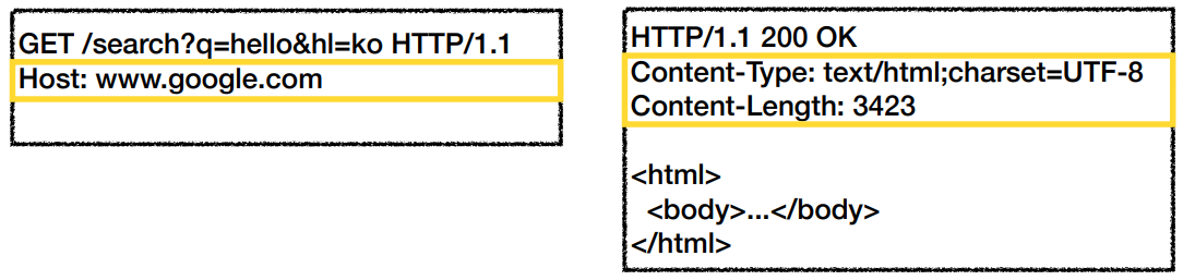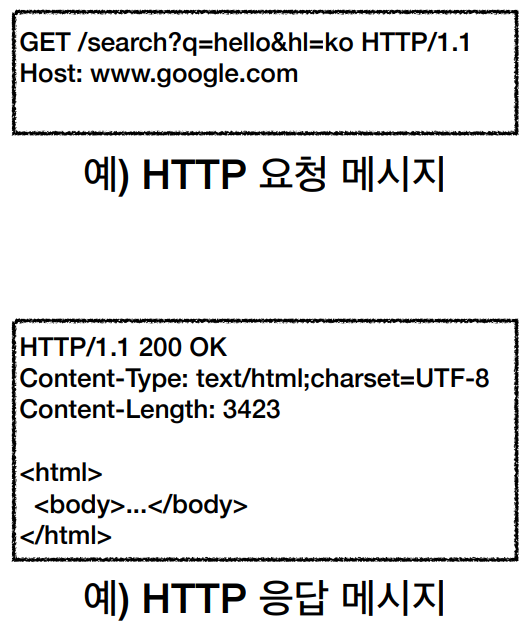 - 아래 보이는 것과 같이 HTTP는 요청 메시지와 응답 메시지 형태가 다르다.