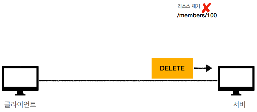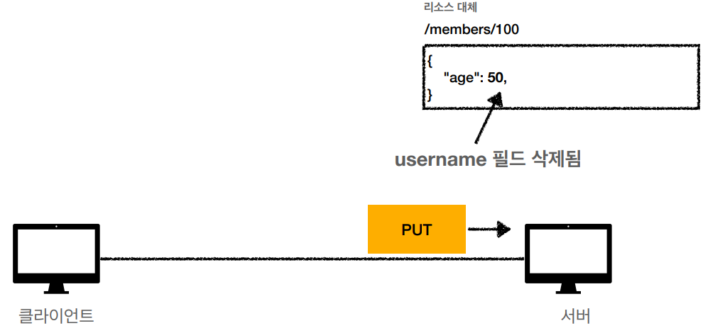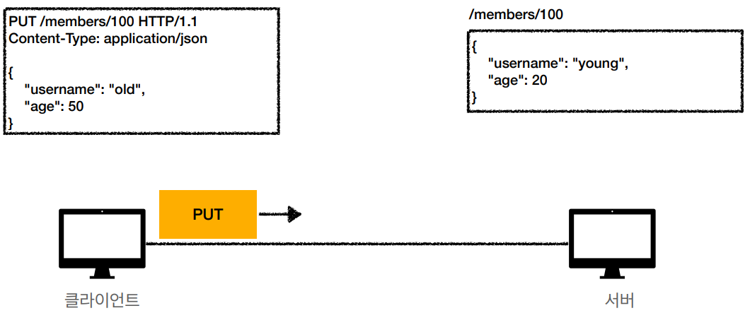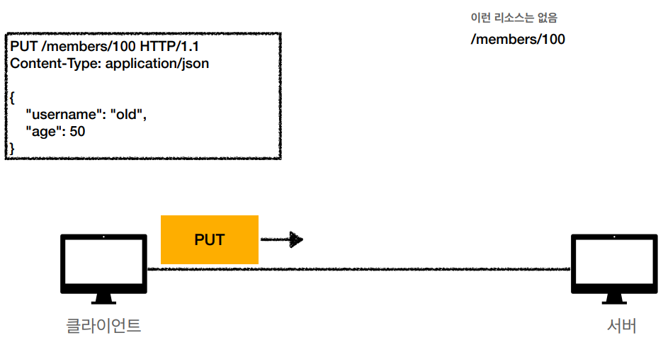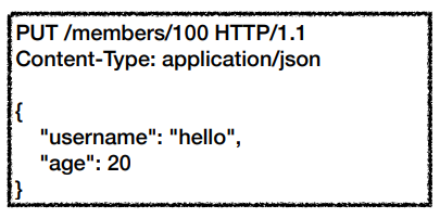 - 클라이언트가 /members/100 리소스를 지정해서 데이터를 서버로 보낸다.