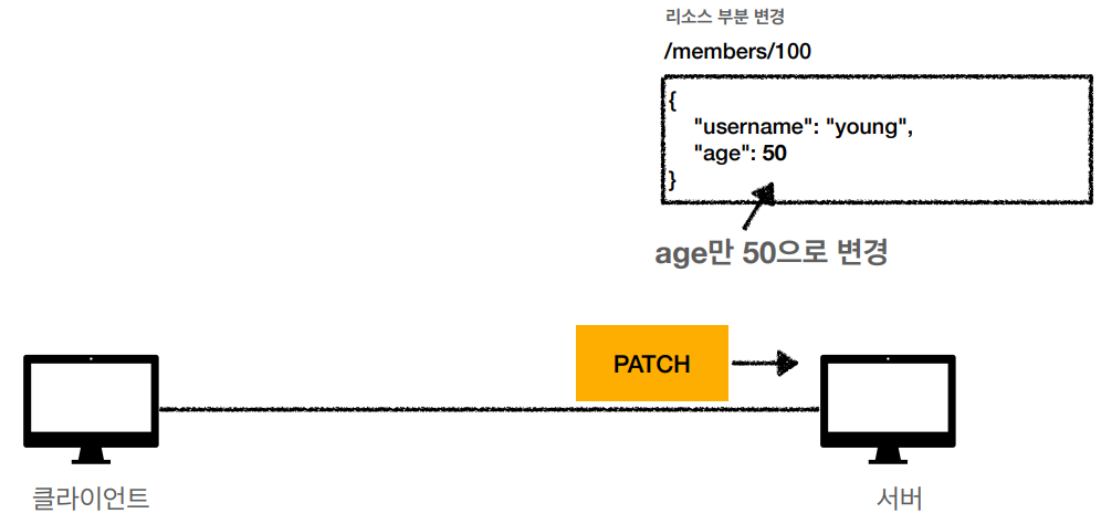 • 간혹, HTTP에서 PATCH를 지원이 안되는 서버도 있기 때문에 안될 경우에는 POST를 쓰면 된다.