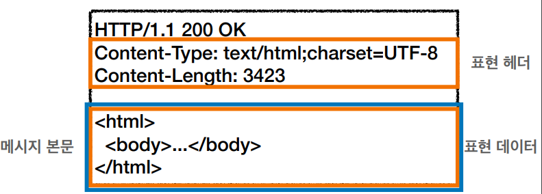 • 표현은 요청이나 응답에서 전달할 실제 데이터(표현 헤더 + 표현 데이터)