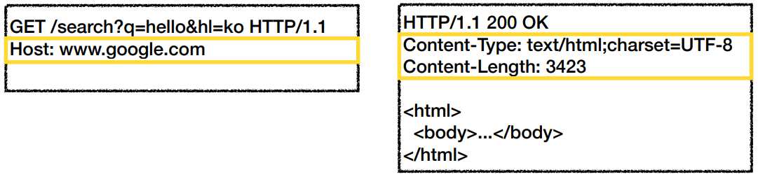 - 데이터 유형(html, json), 데이터 길이, 압축 정보 등등