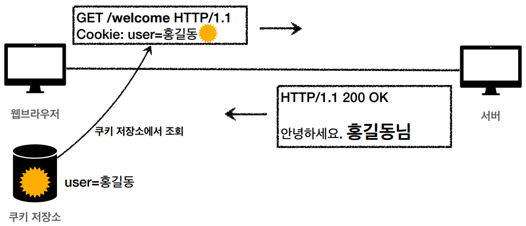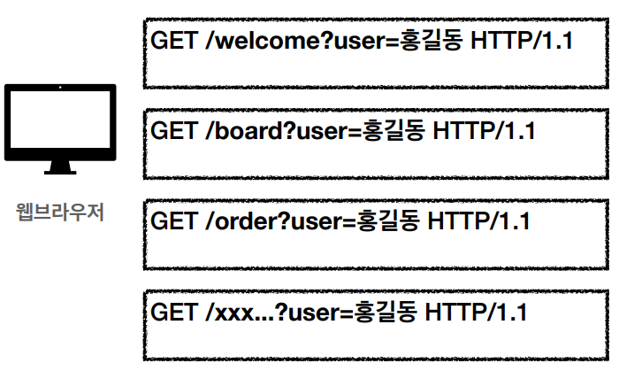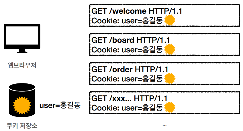 - 웹브라우저에서 모든 요청에 유저 정보를 계속 준다면 서버에서는 로그인 한 회원의 정보를 응답할 것이다.