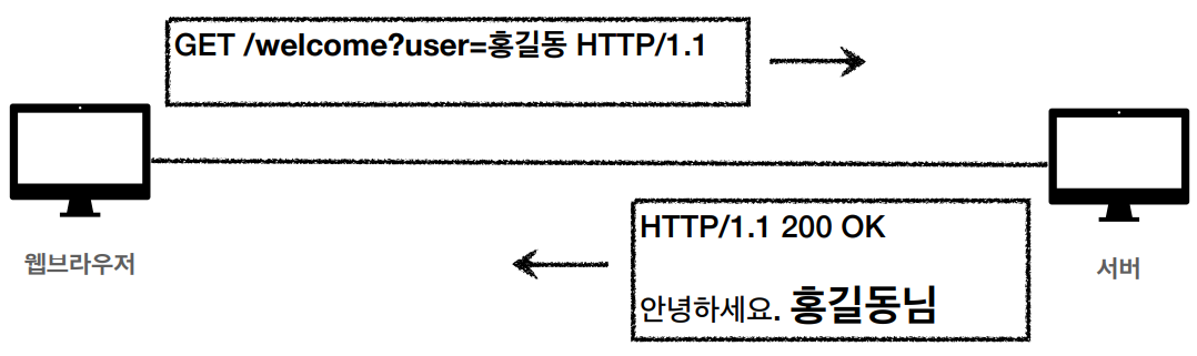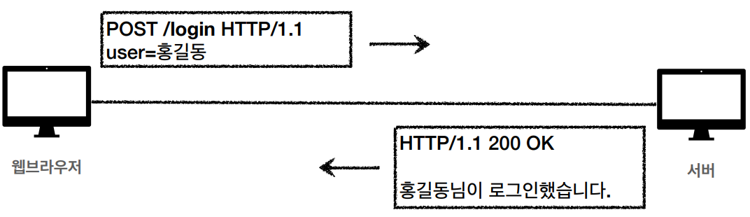 - 웹 브라우저에서 사용자가 user 정보를 담아 로그인을 요청하면 서버에서는 홍길동님이 로그인했습니다. 라고 응답한다.