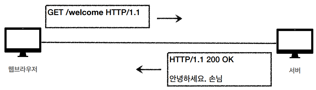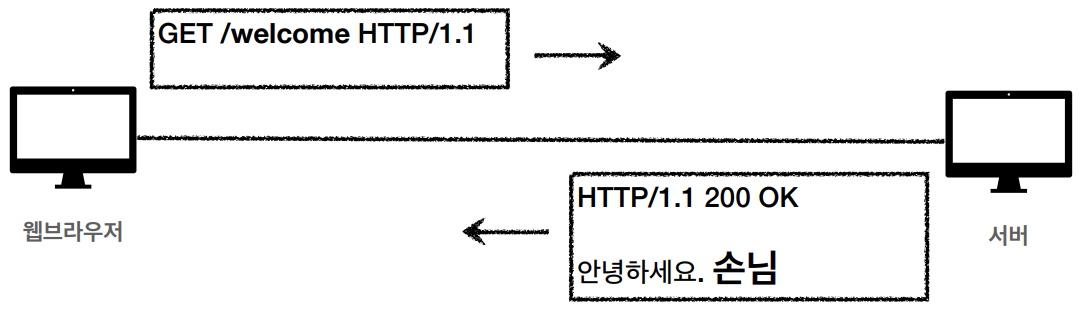 - 로그인 하지 않은 사용자가 웹 브라우저에서 /welcome 으로 요청하면 서버에서 안녕하세요 손님으로 응답한다.