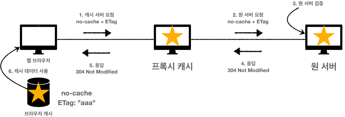 - 데이터는 캐시해도 되지만, 항상 원 서버에 검증하고 사용(이름에 주의!)