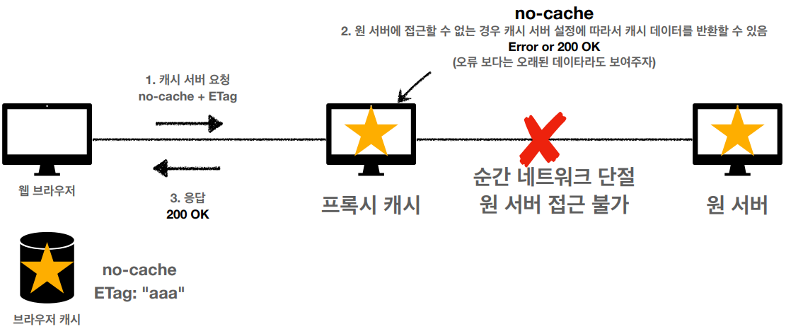 2) 만약에 프록시 캐시 서버가 순간 네트워크 단절로 원 서버 접근이 불가 할 때