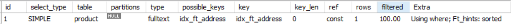 ALTER TABLE product ADD FULLTEXT INDEX idx_ft_address(address);